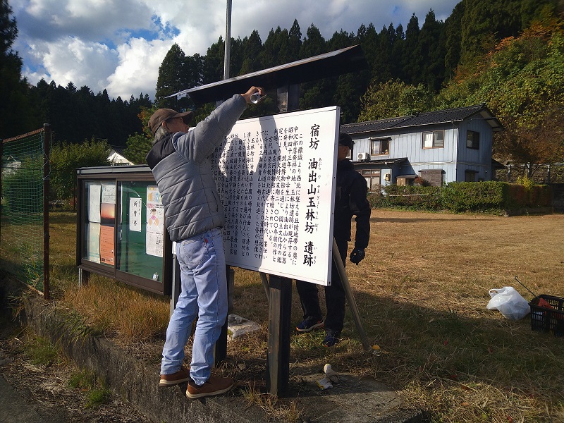 写真: 中沢 油出山玉林坊遺跡 説明板の修繕 (11月15日)